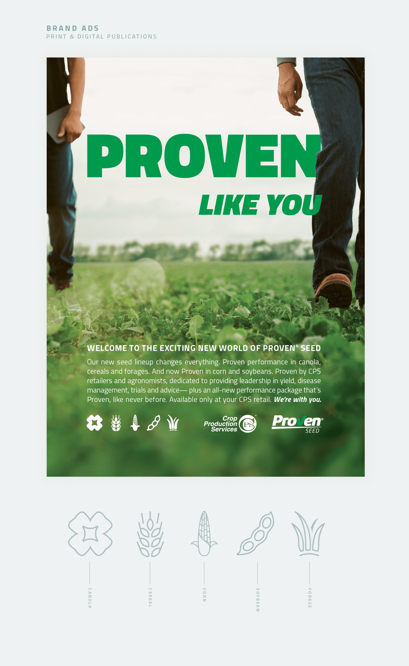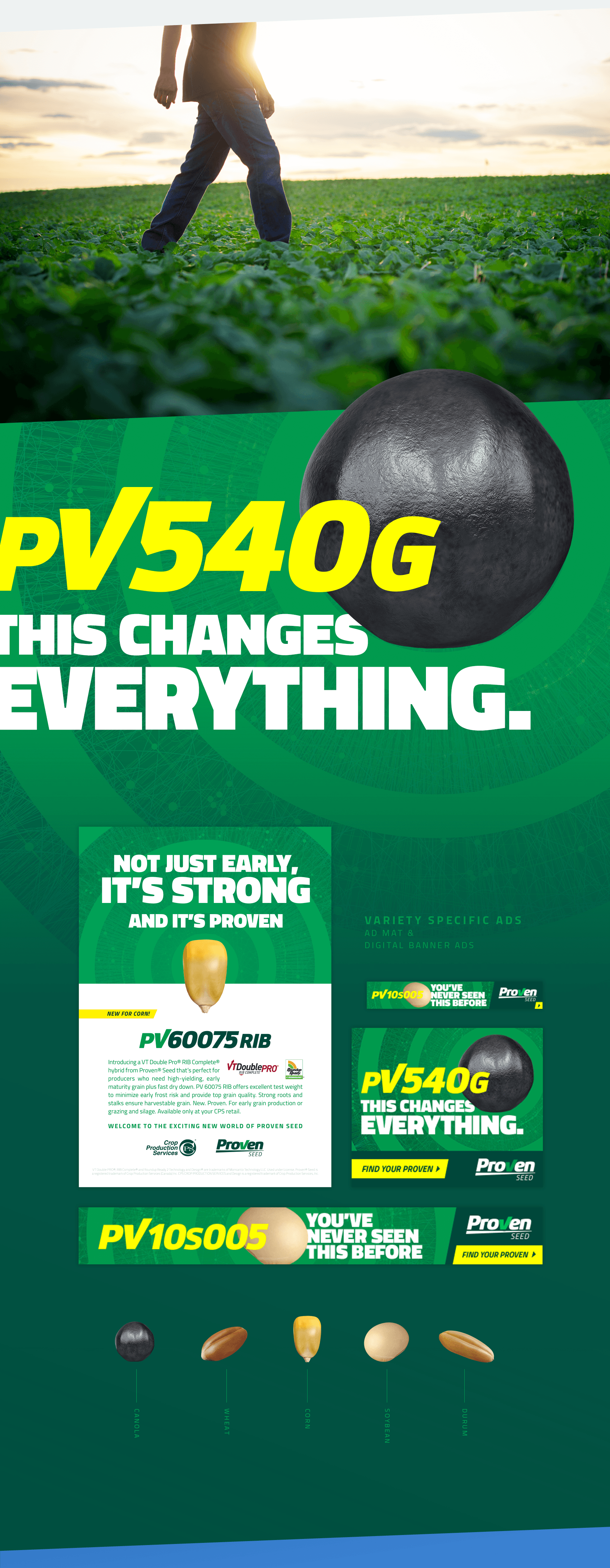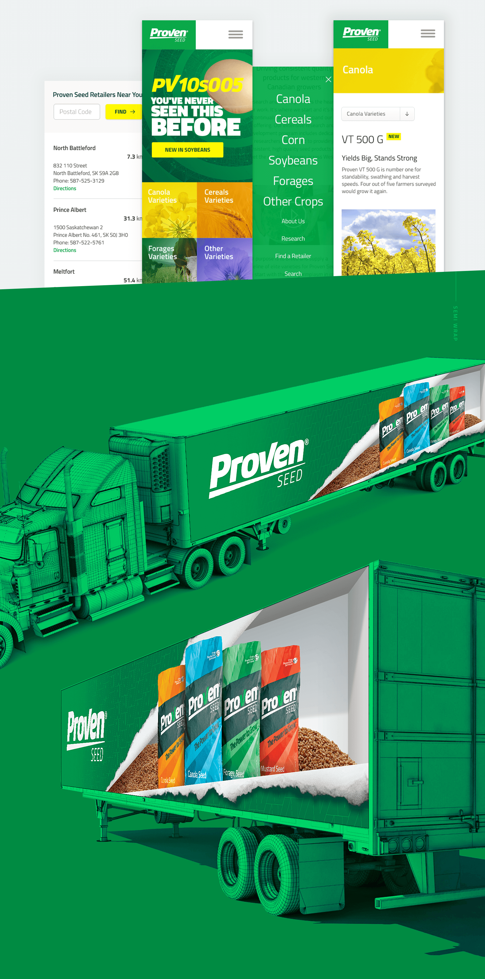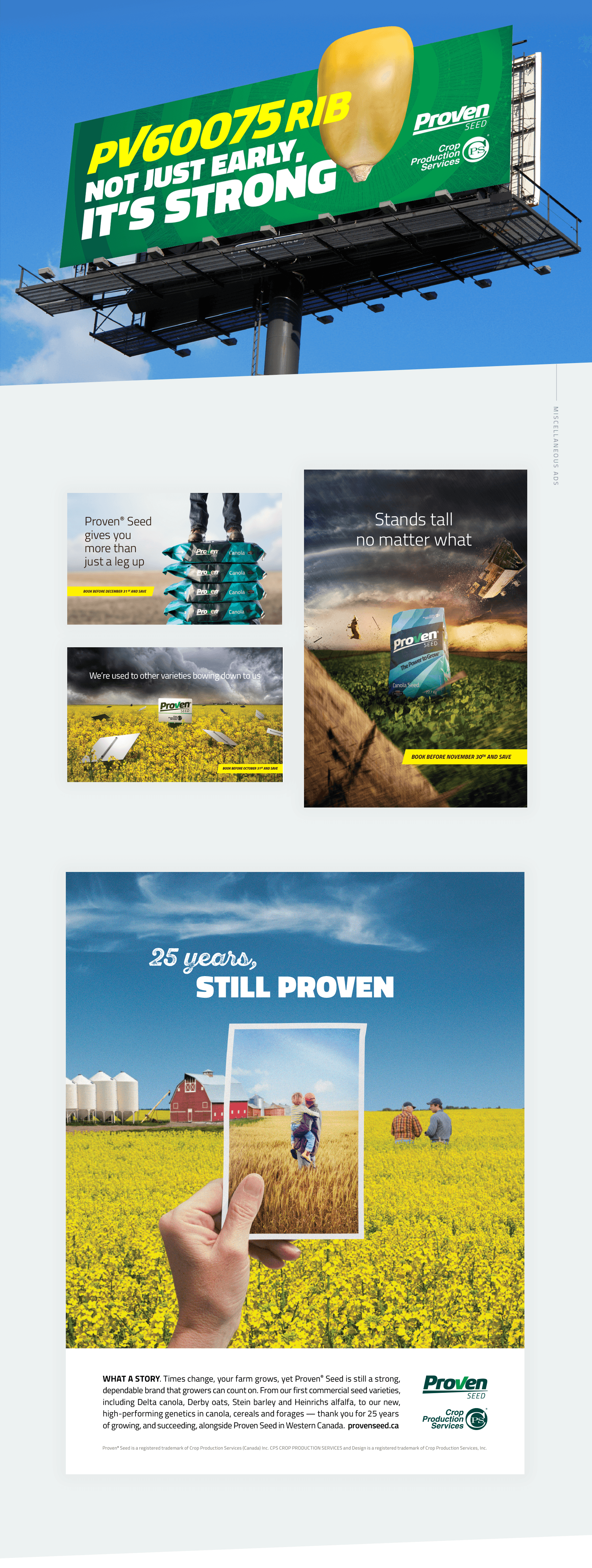 Proven Seed, 25 years growing up on Canadian Prairies. The work displayed below is a collection over a few years of working on the Proven brand. Photography credit: Bryce Meyer, 3D rendering credit: Sheldon McLean.